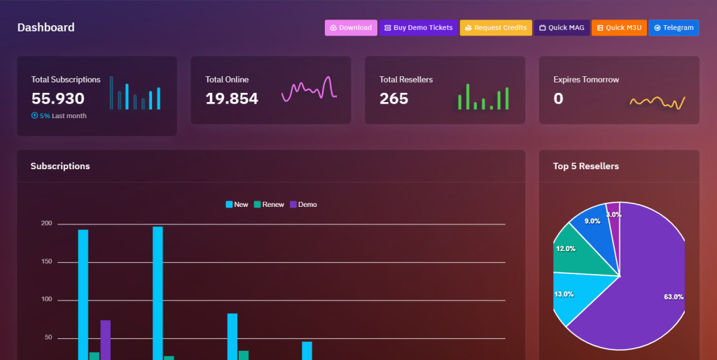 Com o nosso programa de revenda, pode facilmente criar e vender subscrições IPTV usando o seu próprio painel. O nosso software de painel IPTV baseado na web permite-lhe iniciar sessão com o seu nome de utilizador e palavra-passe de revendedor e, a partir daí, pode criar contas para diferentes dispositivos e gerir os seus clientes.